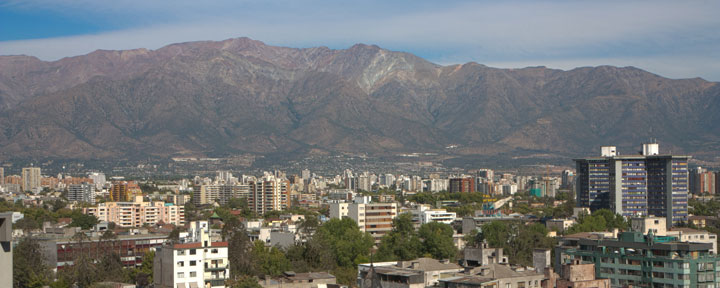 Chile, officially the Republic of Chile, is a country in South America occupying a long, narrow coastal strip between the Andes mountains to the east and the Pacific Ocean to the west. It borders Peru to the north, Bolivia to the northeast, Argentina to the east, and the Drake Passage in the far south. Along with Ecuador, it is one of two countries in South America that do not border Brazil. The Pacific coastline of Chile is 78,563.2 kilometres.